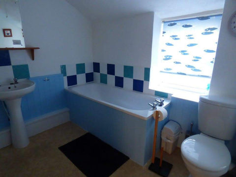 The cosy sitting room has a beamed ceiling and tiled floor, the modern kitchen has a dishwasher, cooker and fridge freezer. A "Cottage Style" staircase takes you to the first floor where there is a large double bedroom and a bathroom. A steep, twisting, old fashioned staircase takes you up to the second floor where there is a double bedroom and a triple bedroom with bunk beds.